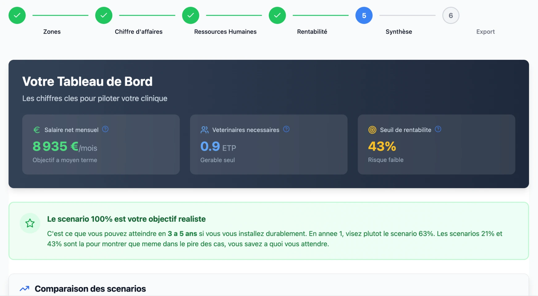 Sans prévisionnel solide, ta banque ne te suivra pas. Cet outil te permet de projeter ton activité sur 3 ans avec des hypothèses réalistes adaptées au vétérinaire.